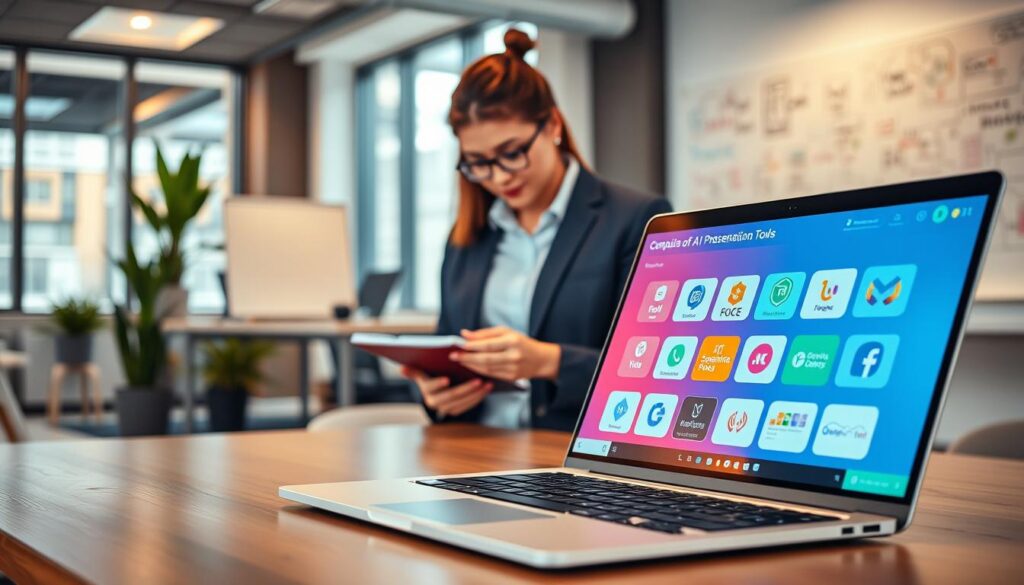 Mehrere KI-gestützte Präsentationssoftwaretools sind in den letzten Jahren entstanden, die Funktionen bieten, um den Prozess der Erstellung von Präsentationen zu rationalisieren. Diese Tools sind in der Lage, unterschiedliche Facetten des Prozesses der Präsentationserstellung zu automatisieren – von der Foliengestaltung bis hin zur Strukturierung von Inhalten. Einige KI-Tools sind in der Lage, ein Dokument zu untersuchen und auf dessen Grundlage automatisch eine Präsentation zu erstellen, die relevante Bilder, Diagramme und Aufzählungspunkte enthält.